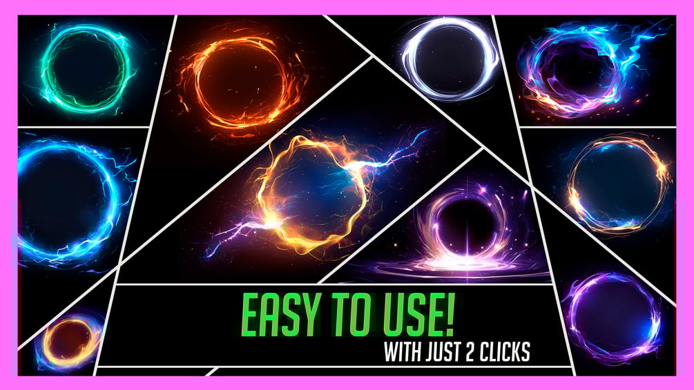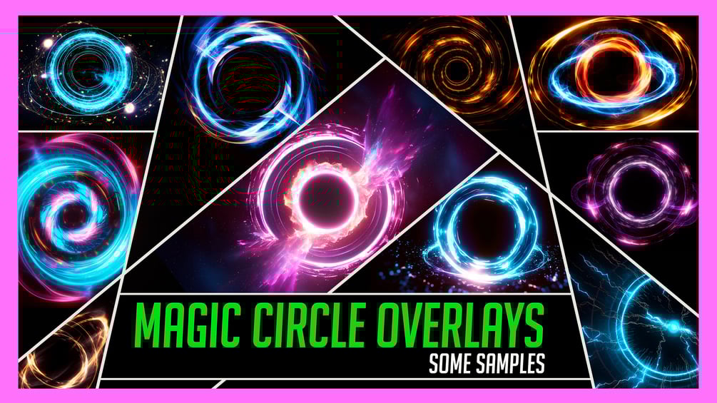 🔷 Full pack includes different Overlay Effects like: Electric circles, Elements Circle, Glowing Golden Magic shield, flire circle effect, Portals, Arcane circle, Rainbow circle, Plasma effect circle, Mystic aura circle effect, Colorful light circle effect, energy particle circle and much more. Feel free to explore different ways to use them.