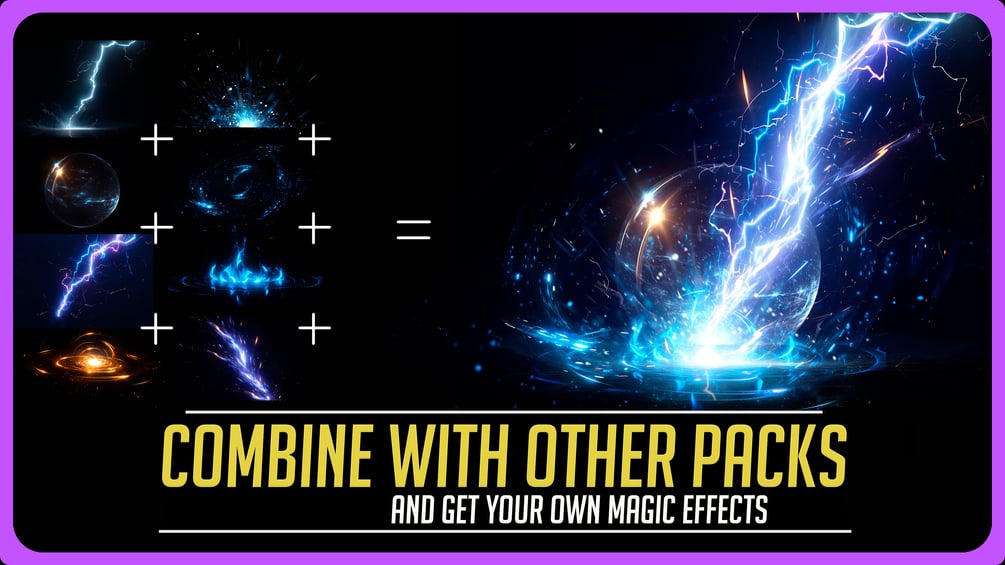 🔷 Full pack includes different Overlay Effects like: Stormy clouds, Fire Spell, Nature Elements, Magic shield, Ice flower shield spell, Magic Portal, Arcane aura spells, Magic Skillshots, lightning bolts effect, Energy sphere, plasma effects, Glowing Golden swirl, Magic Lightning tornado, lightning strike splash shockwave effect, Hurricane spiral, Blackhole Spells, Nebula effect and much more. Feel free to explore different ways to use them.