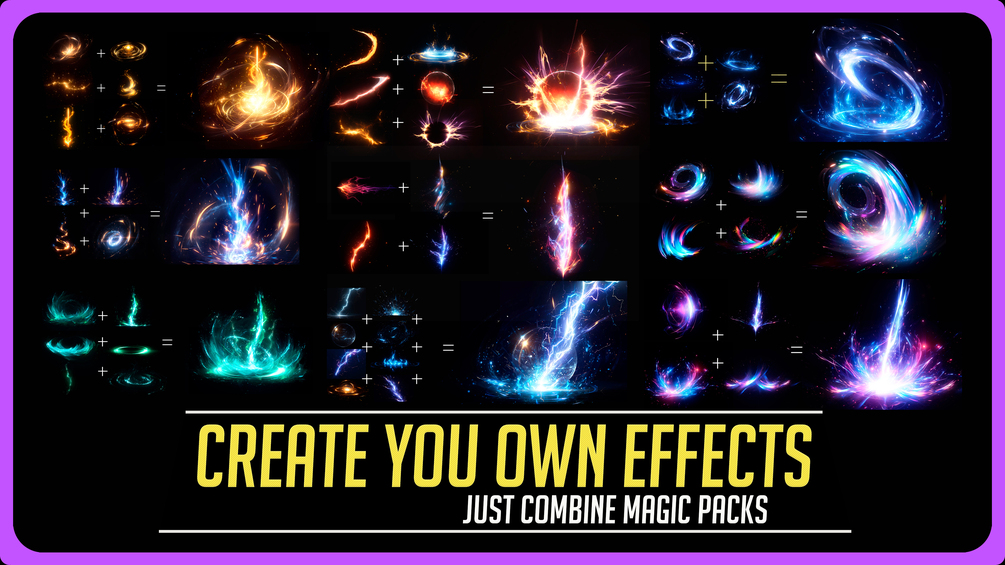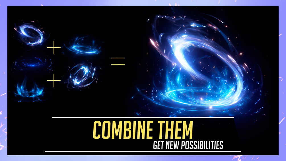 🔷 Full pack includes different Overlay Effects like: Cosmic magic slash, Spirals, Magic circle effect, summon glowing particles circles, and much more. Feel free to explore different ways to use them.