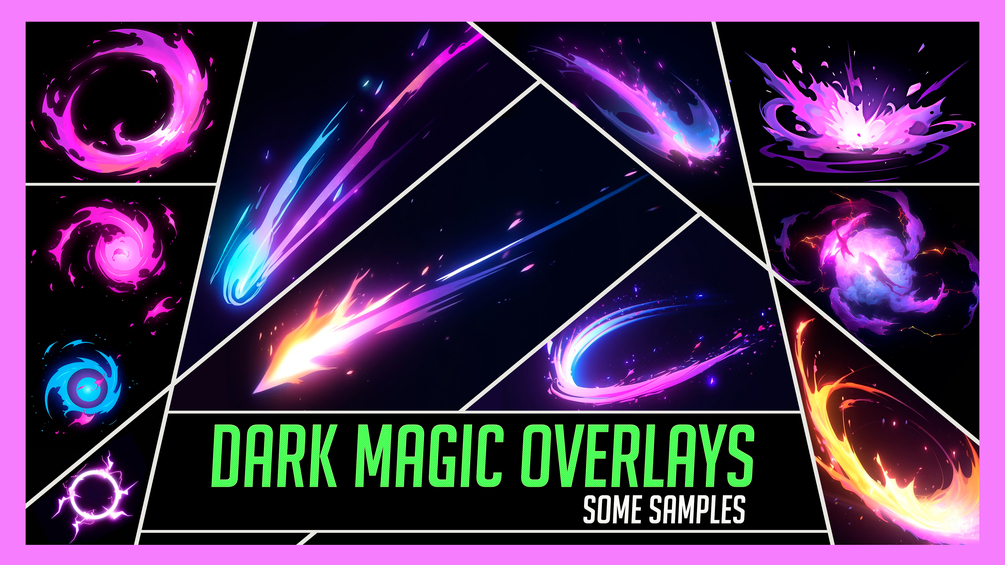 🔷 Full pack includes different Overlay Effects like: Dark Magic spell, Dark Magic Fire, Cartoony Electric Dark Magic orb, Dark Magic Splash, Dark Magic spheres, Dark Fire Circle, Dark Magic energy beam spell, Arcane Magic spells, Cartoon Magic Electric effect, Stylized Dark Magic projectile, Dark Magic Lighting orb effect, Spiral Dark Magical effect, and much more.